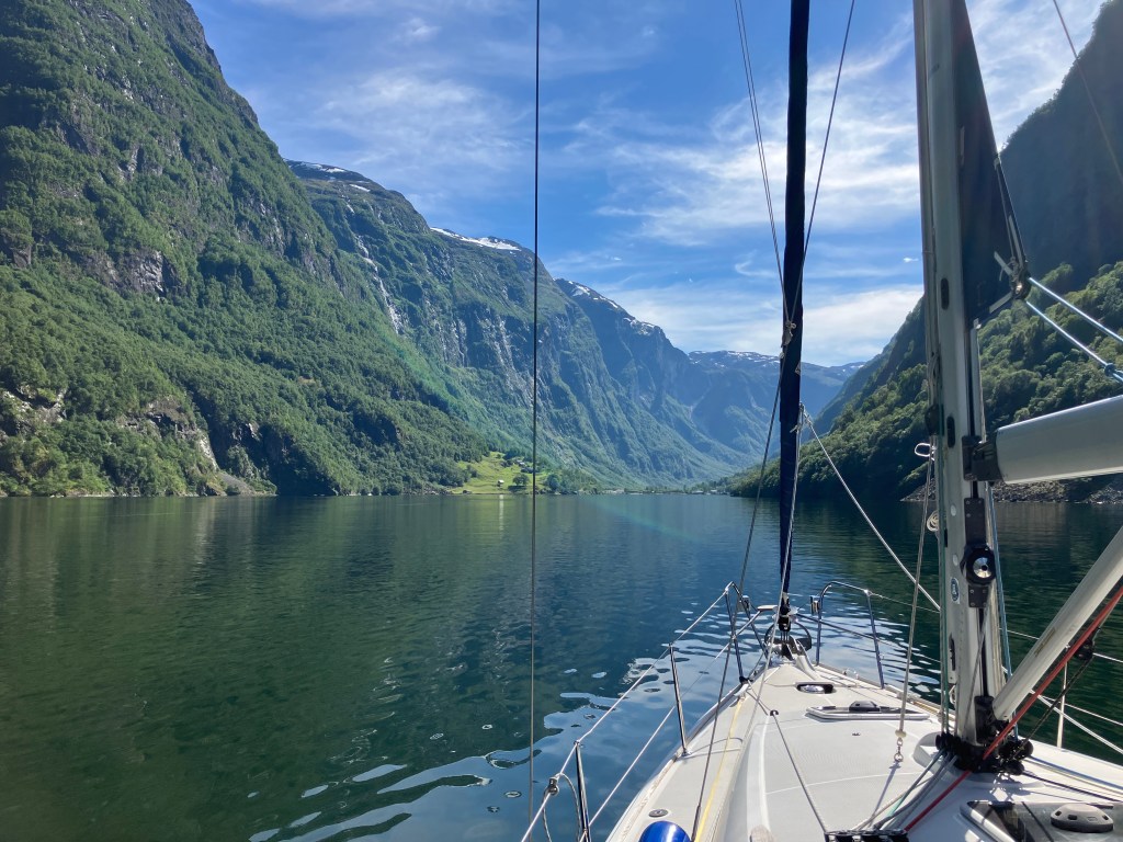 Sighs of relief! At last we can make a bid for freedom. We cast off, wave goodbye to Tore and his crew, and motor past the island of Munkholmen before hoisting the sails.