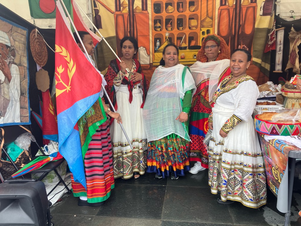 “I think that I might try some of those dumplings from the Polish stall”, says the First Mate. “The samosas might be a bit hot for me. Do you see the Eritrean national dress over there. So colourful!”