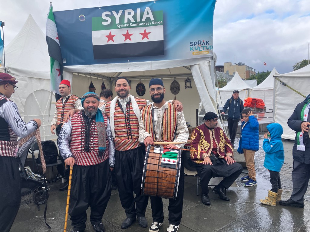 “We can eat our food at one of the tables”, I say. “And listen to the music that these Syrians are playing.”