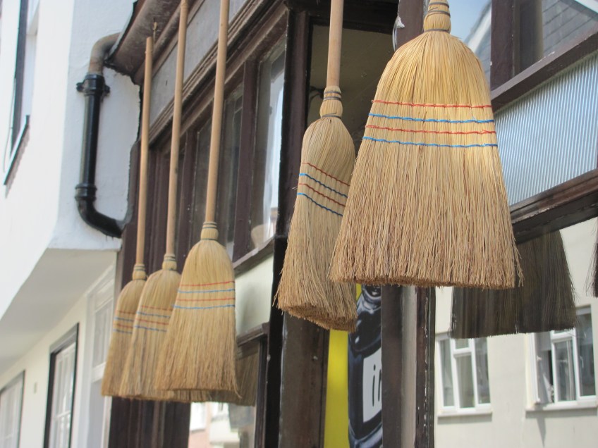 IMG_5529 Published June 18, 2018 at 3648 × 2736 in Hastings and Rye Witches’ brooms hanging outside AG Hendry & Co, High Street, Hastings.