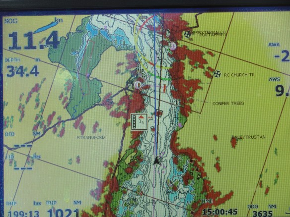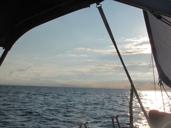 We press on. We are now in sight of Scotland – the Mull of Kintyre is clearly visible on the horizon, only 15 miles away. We are now entering the ancient sea-kingdom of Dalriada, which spanned what is today Antrim in Northern Ireland and Argyll in Scotland. Its Gaelic-speaking people were called Scots by the Romans and eventually gave their name to Scotland.