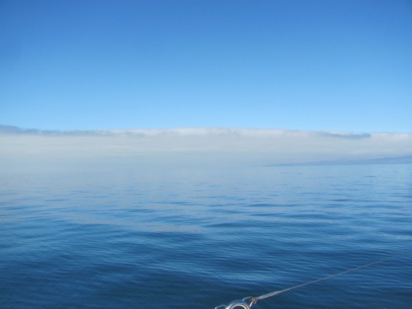 We had left at 0800 the next morning and continued northwards. The sun had come out, and the wind had dropped to a mere puff. The sea had been like a mirror, disturbed only by Ruby Tuesday’s wake. From time to time, we had encountered flocks of black guillemots on the water enjoying the peace and warmth and dispersing only as we neared them to settle a little further away. The light had been ethereal, bathing the sea and sky in a soft glow. Only the billowing clouds of the weak cold front on the horizon we had been warned about on the forecast had reminded us that it would not always be so peaceful.