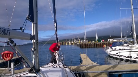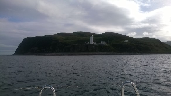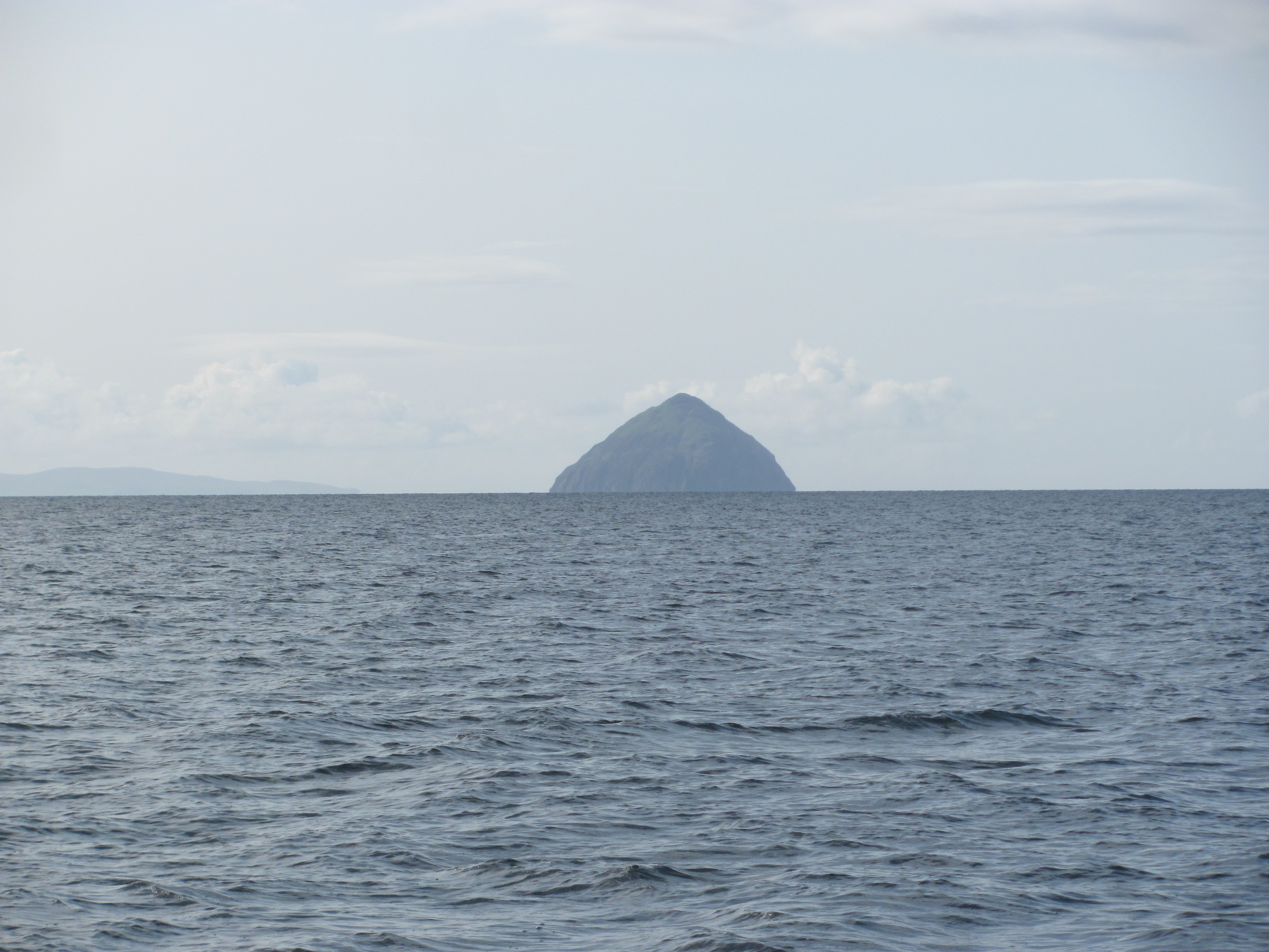 Off to our starboard the conical shape of Ailsa Craig, a volcanic plug from Tertiary times, rises out of the sea. Between it and us, we spot a grey, angular and slightly menacing fisheries patrol vessel slowly motoring back and forth, which the AIS tells us is the Minna. We are not sure what it is after, but just to be on the safe side we check to make sure that our fishing rods are not poking up. Not that we can be accused of depleting the oceans with our abysmal catch record anyway.