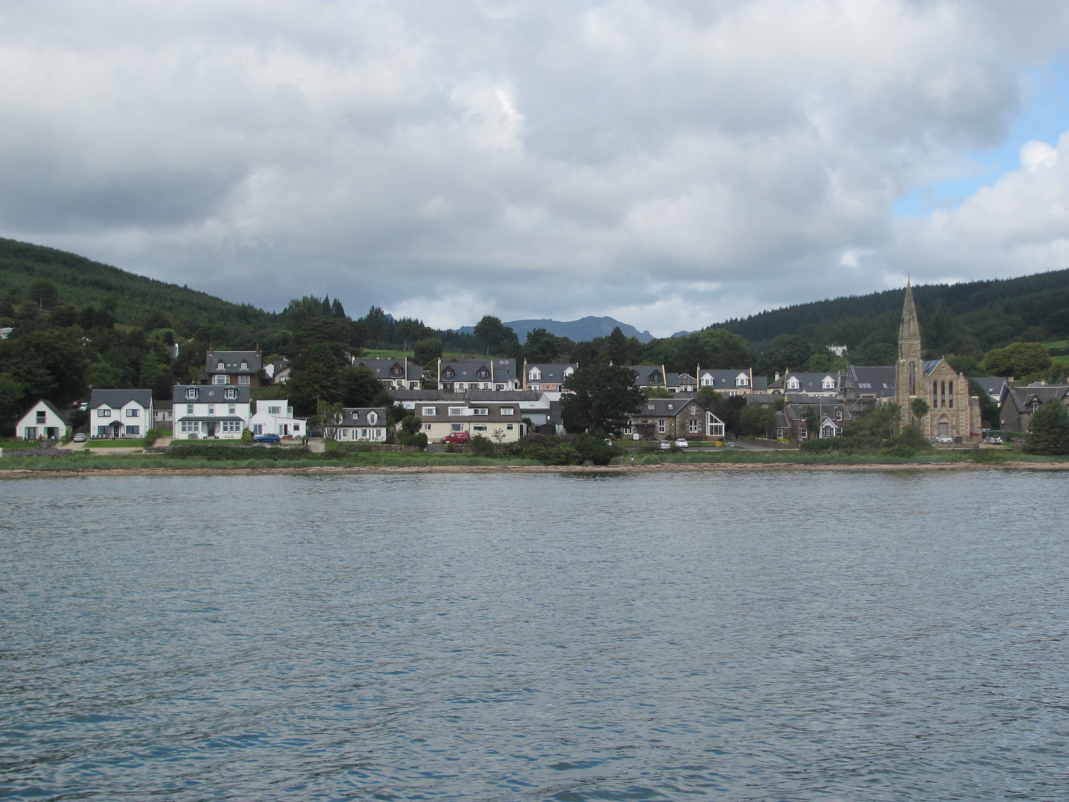 We heat some soup and cut some slices of bread, and sit in the sun eating our lunch and absorbing the view. Apparently Lamlash was where King Harkon of Norway sheltered his ships before the Battle of Largs in 1263 in which he was beaten and sent packing back to Norway, ending the Norse domination of the Western Isles. We try to imagine the Norse warships lined up along the beach, others jostling for a mooring space in the bay, fires being lit as darkness fell, and the Norsemen drinking and singing as they psyche themselves up for the battle against the Scots across in Largs the next day. It all seems so quiet and peaceful now.