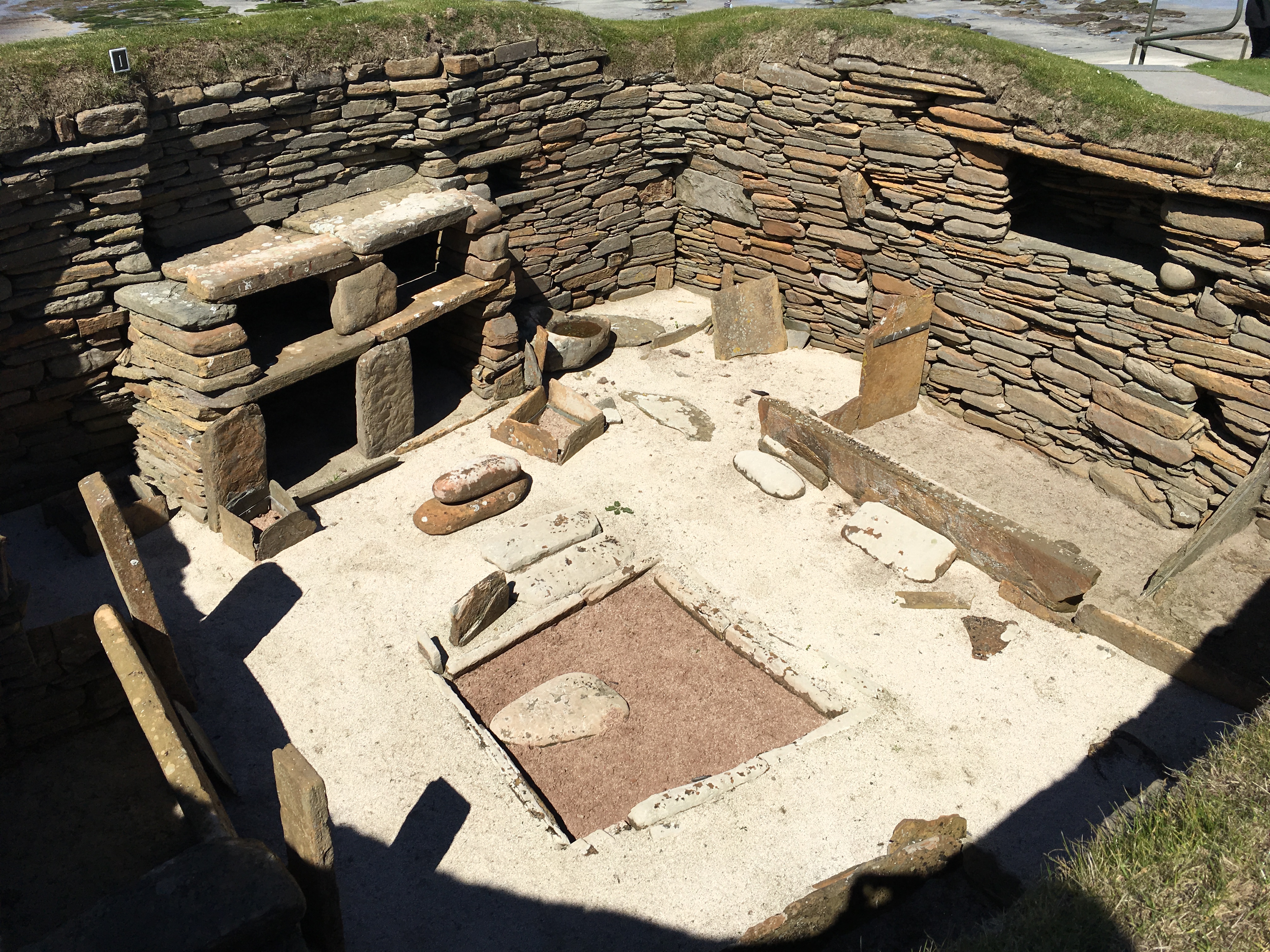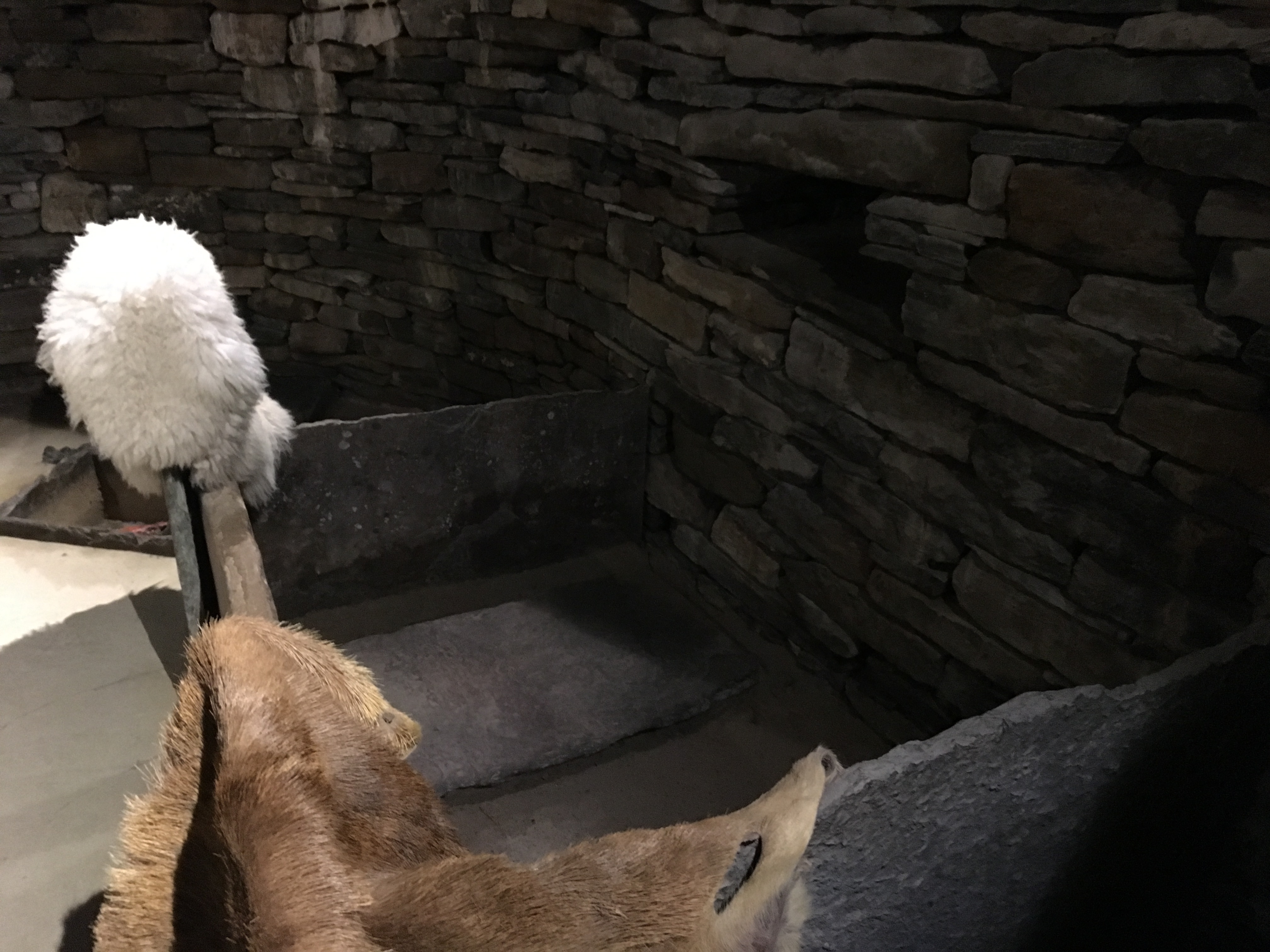 We eventually arrive at the Saga Centre. It is a bit smaller than we expected, in fact so small that it doesn’t have any staff in attendance! There is a poster board display and a video that starts when you press a button. The video tells the history of the site in the 12th century. At that time, it was the Earl’s manor house (a bu is the main farm in the area), and the Round Church was built by the same Haakon mentioned above as a penance for having his cousin Earl Magnus killed.