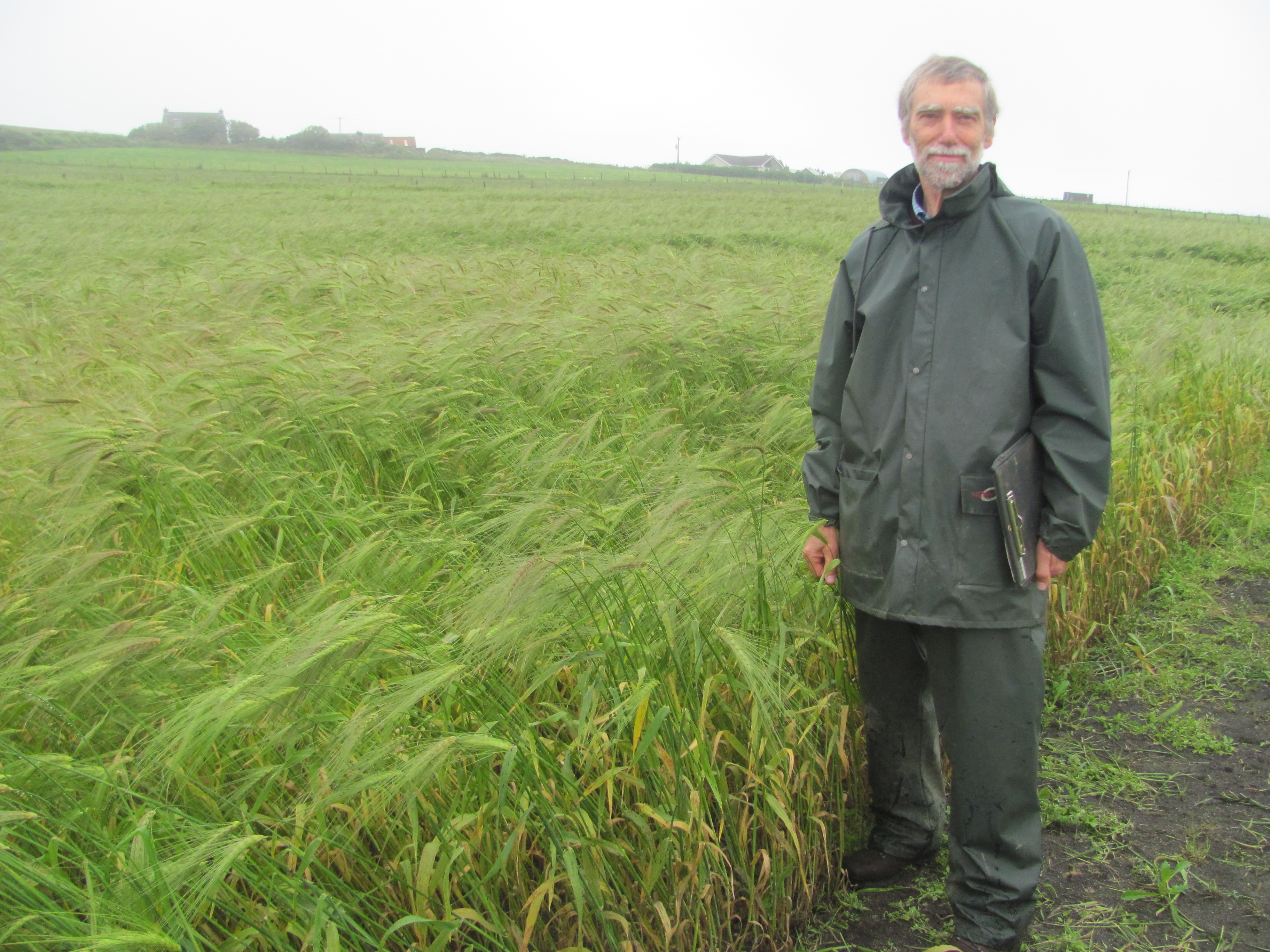 In the morning, we meet Dr Peter Martin, a former colleague of mine. Peter is now working for the Agronomy Institute at the University of Highlands and Islands in Kirkwall, and is doing research on bere, a traditional type of barley grown in Orkney, Shetland and Scandinavia. We drive out to his experimental plots on the Island of Burray. On the way, he tells me about bere.