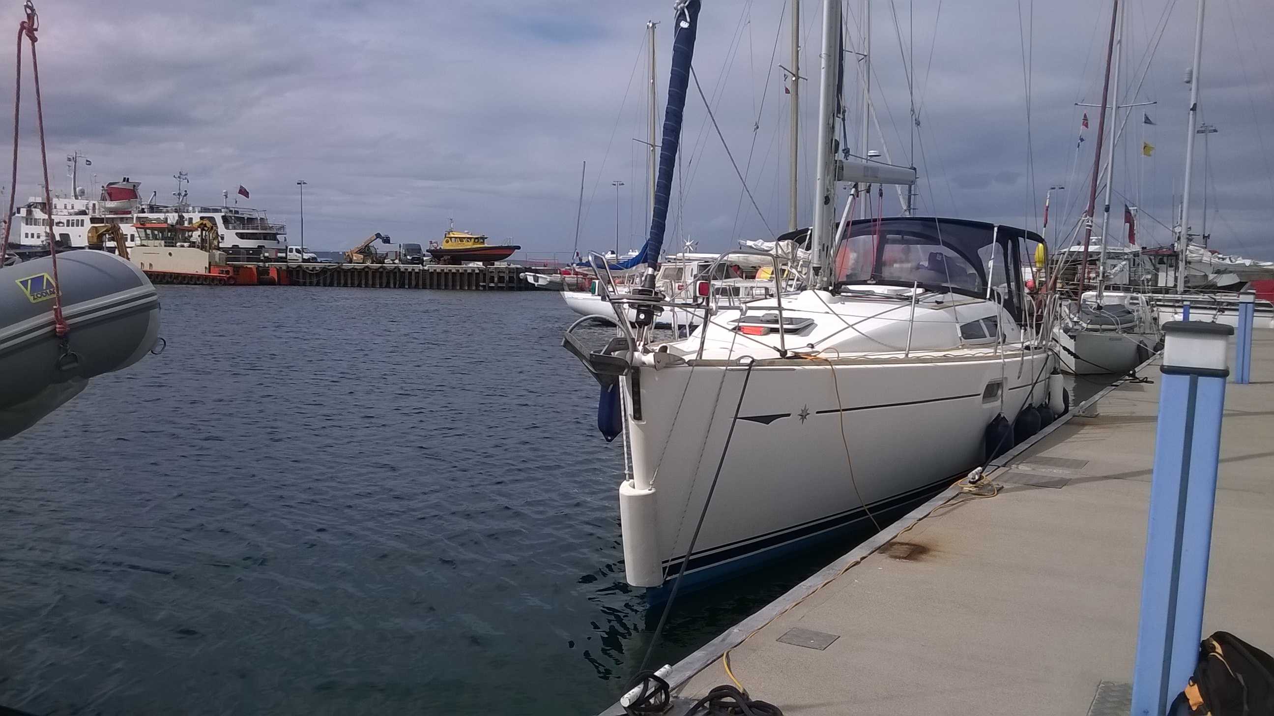We make it through safely and motor the last little bit into Kirkwall marina, where we tie up.