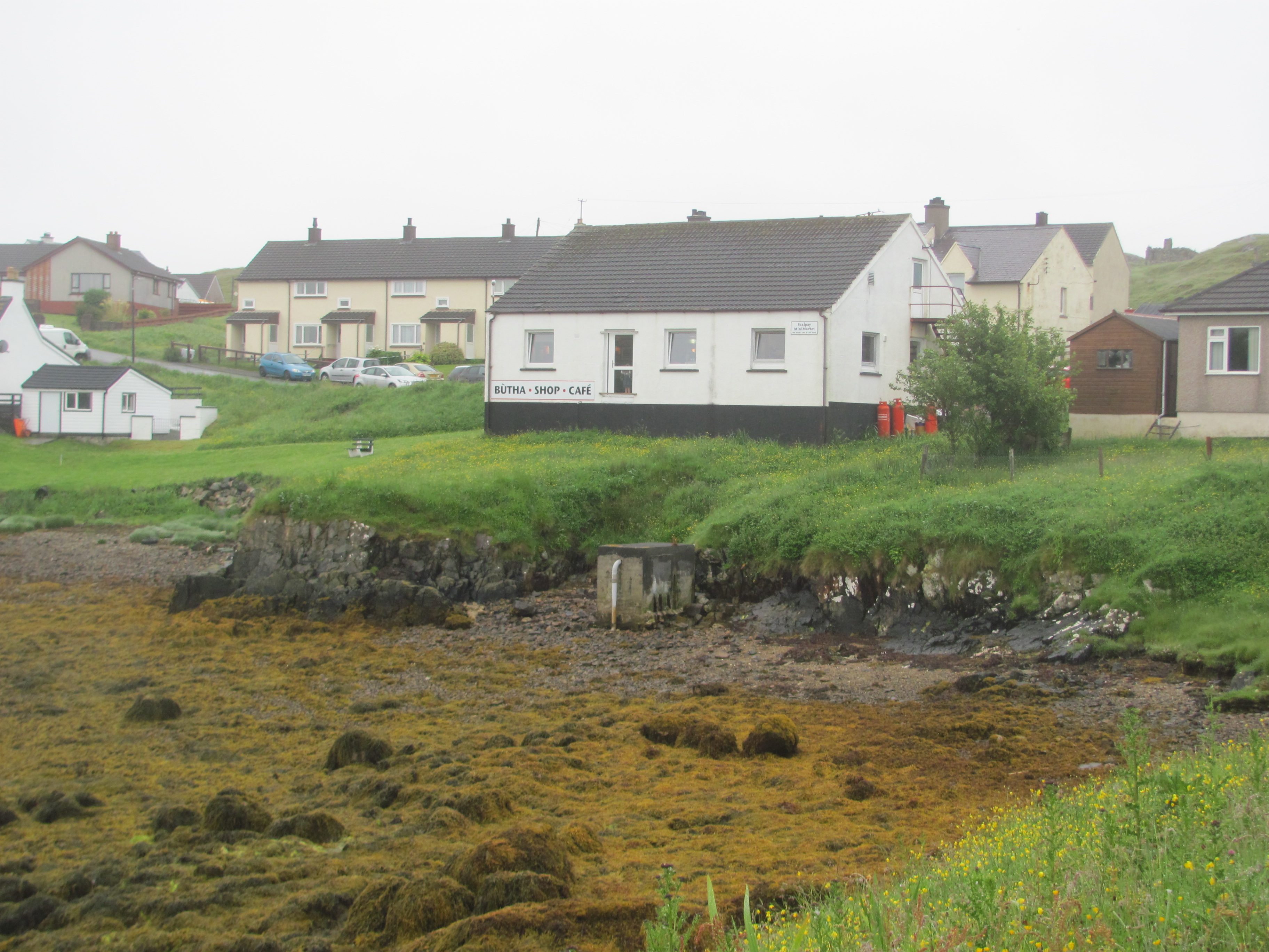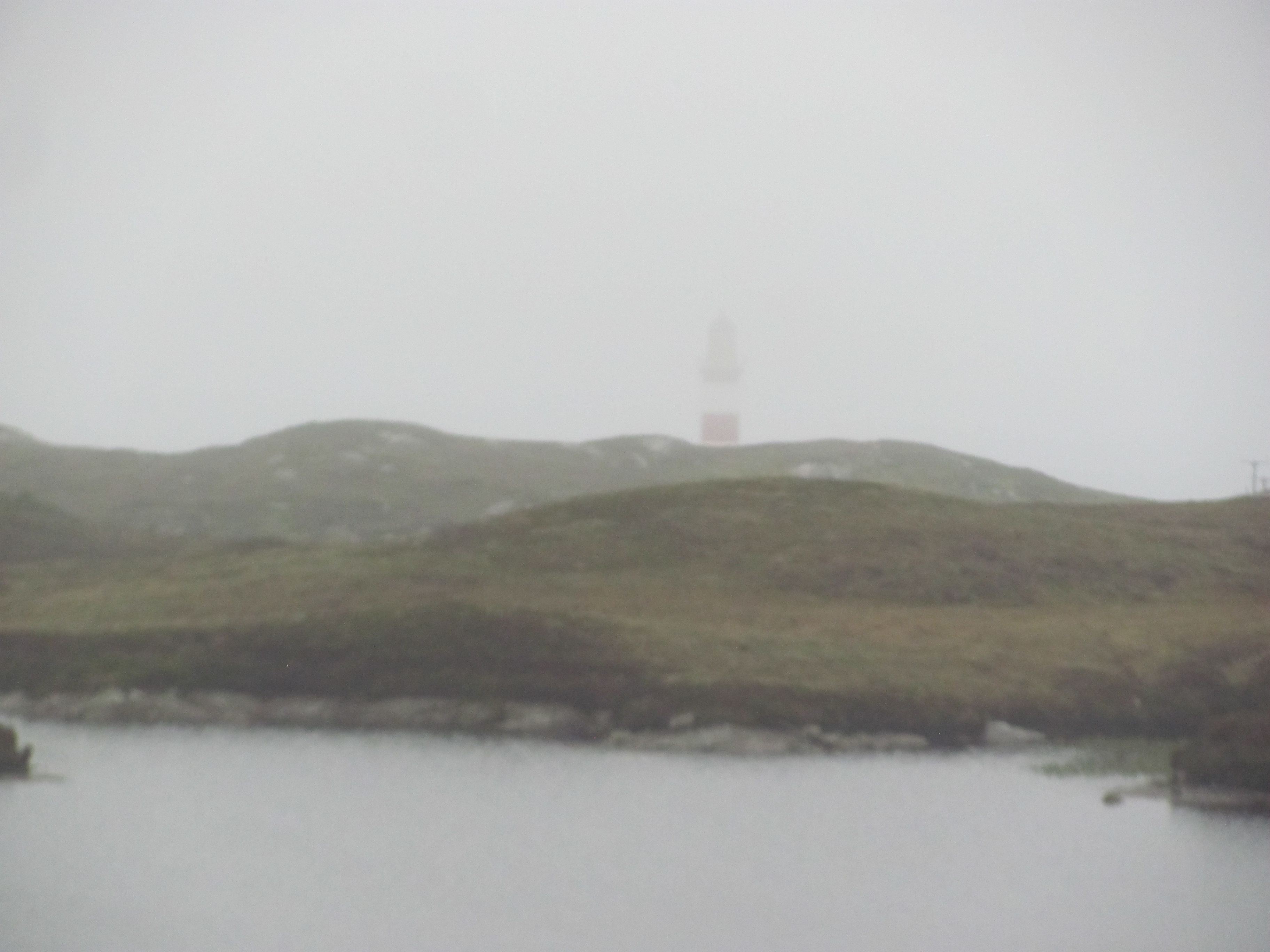 As it is so miserable, we decide not to walk down to the lighthouse itself, but follow the road back towards the village. Eventually the rain stops. On the way, a mobile fish van passes us bringing fish to the remoter reaches of Scalpay. My first thought is that bringing fish to a fishing community is a bit like carrying coals to Newcastle, but I quickly realise that there are other occupations on the island besides fishing. Midge-disposal, for one …