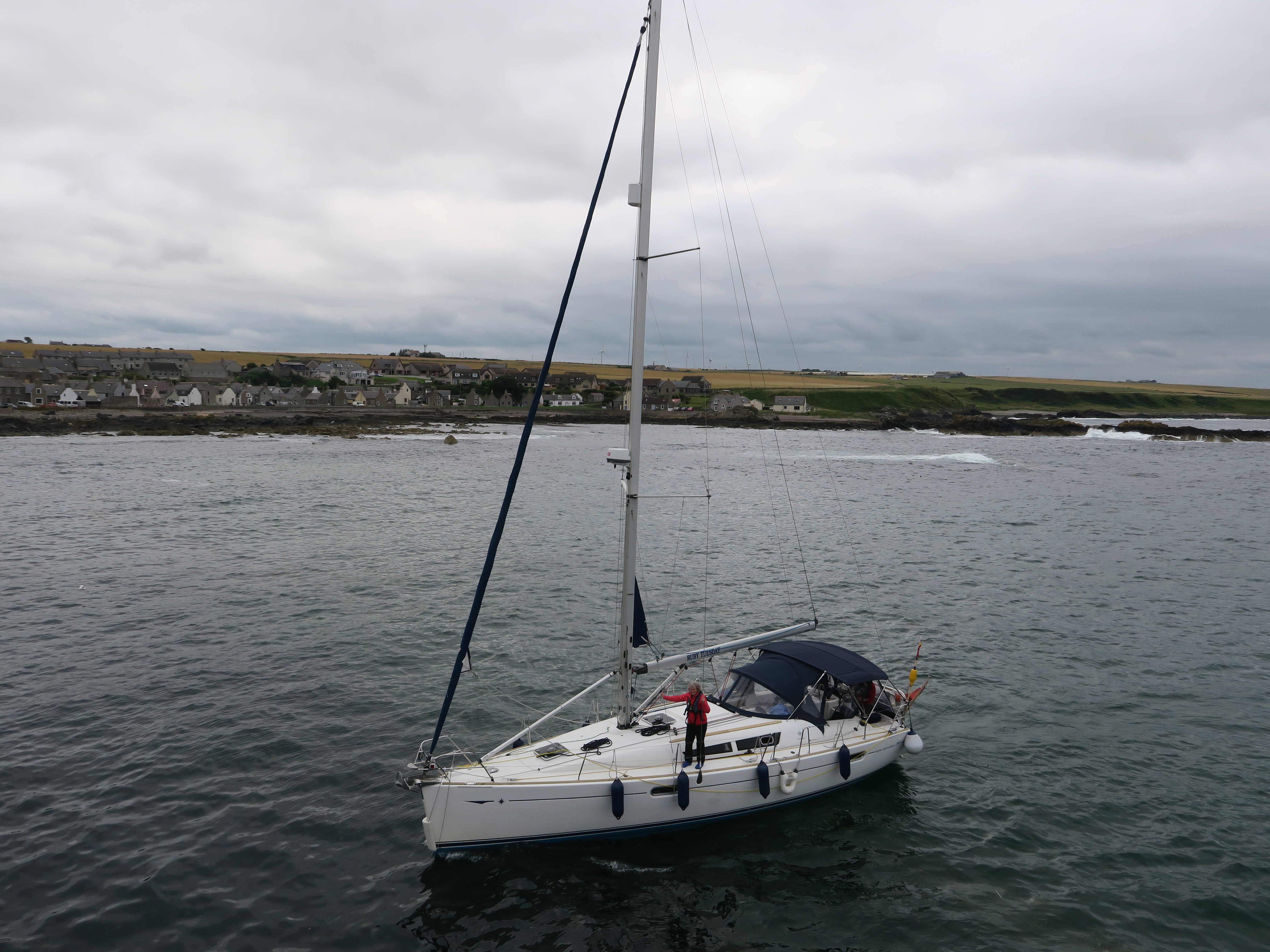 We had left Whitehills Marina that morning at 0530 to give us enough depth of water to get out before the low spring at 0900 when we would have been grounded again. The plan was to anchor in deeper water just outside the entrance to the harbour for a few hours, have breakfast, then catch the east-flowing tidal flow. The main ebb tide flows down past Wick, heading roughly for Cullen, before splitting into two, with one stream heading westwards in towards Inverness, and the other stream eastwards towards Fraserburgh and around Rattray Head. It was the latter stream that we had wanted to try and catch when it started flowing eastwards at around 1000. All had gone according to plan, except for the wind, which had had a little bit more east in it than had been forecast. We could still sail – it just meant that we would have to tack more often and the going would be slower than we might have liked.