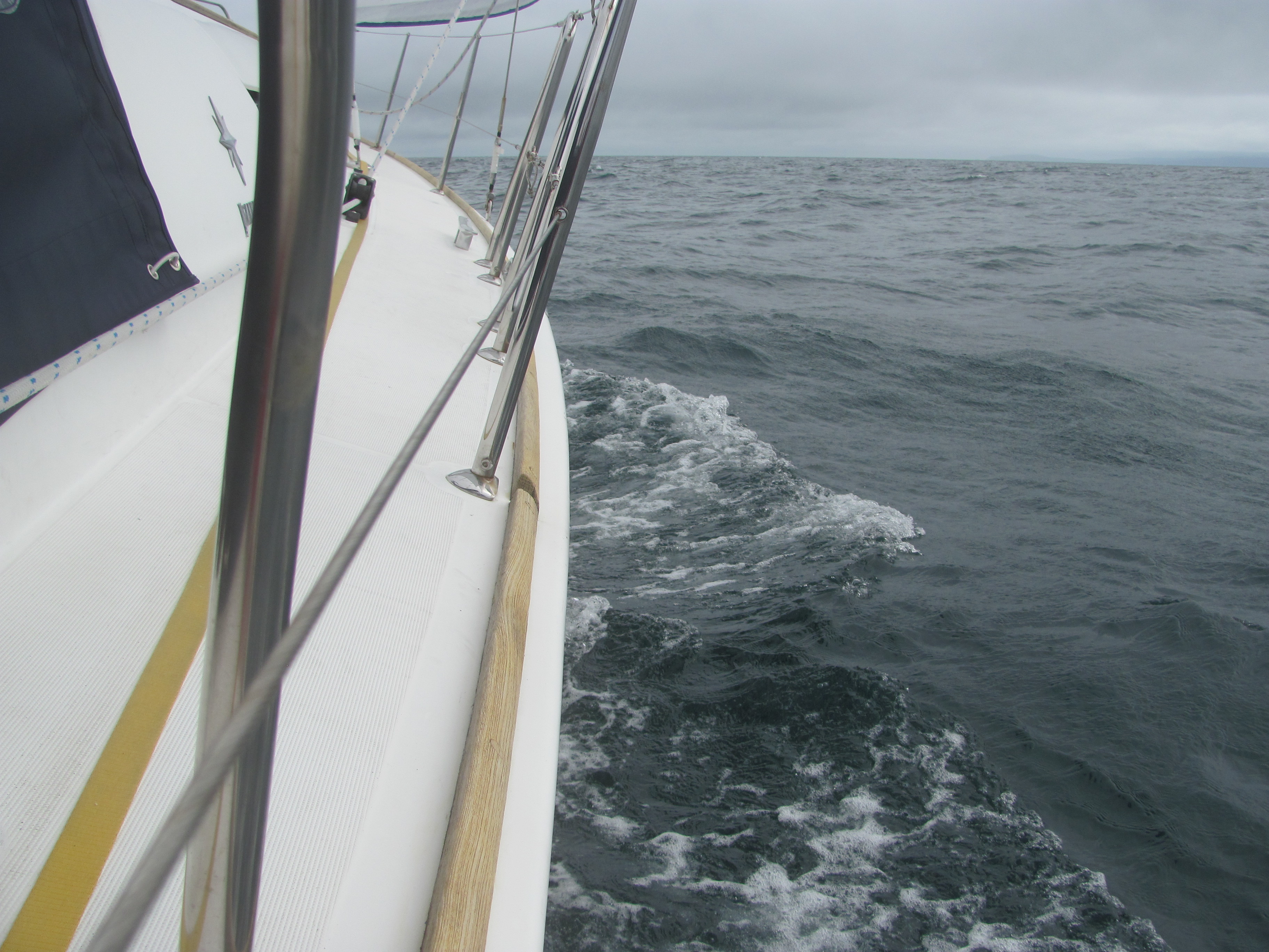 The wind strengthens, driving a band of cloud in from the east, and the temperature drops as Scottish weather reasserts itself. The First Mate goes back down into the cabin.