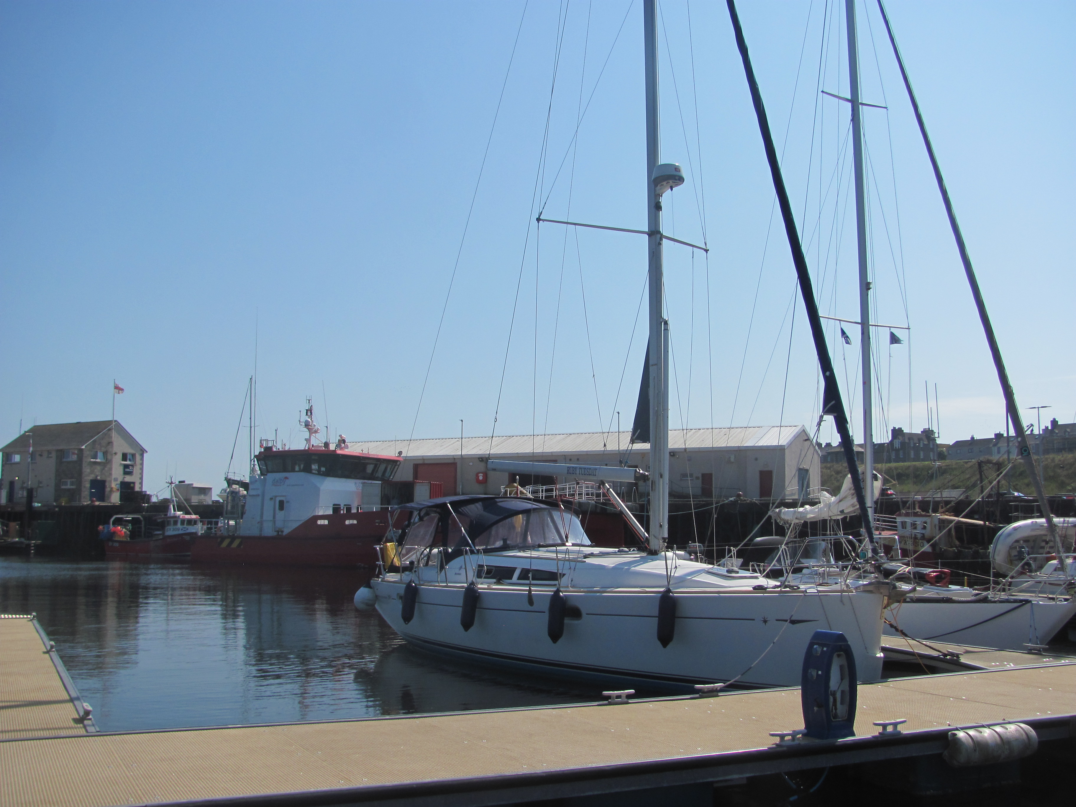We arrive at Peterhead Harbour at 1730. As advised by the Sailing Directions, we call up the Harbour Authority about a mile away and tell them that we are heading for the marina. Peterhead Harbour is a busy fishing port and also home for many of the supply ships for the oil rigs in the North Sea, so there is a lot of activity.