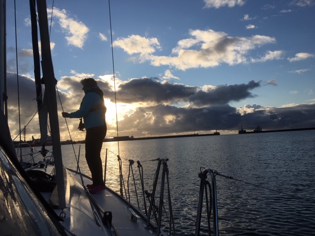 The winds are dead on our nose and we are forced to motor. We had considered leaving the next day, a Friday, but we needed to be in Edinburgh by Thursday night to catch the sail-maker there the next day to replace the small tack loop at the bottom of our main sail before he closed for the weekend. The First Mate had noticed a small fray in the loop when we were putting the sail up, and although it was still safe enough to use for a while, we didn’t want to take the risk of it fraying further and causing a disaster. The loop attaches to a hook inside the mast to provide tension to the front, or luff, of the sail, and a sudden snapping might cause the sail to shoot upwards, making it difficult to retrieve. Better to be safe than sorry.