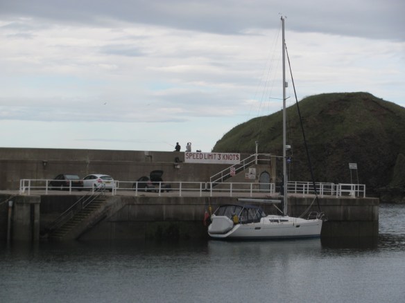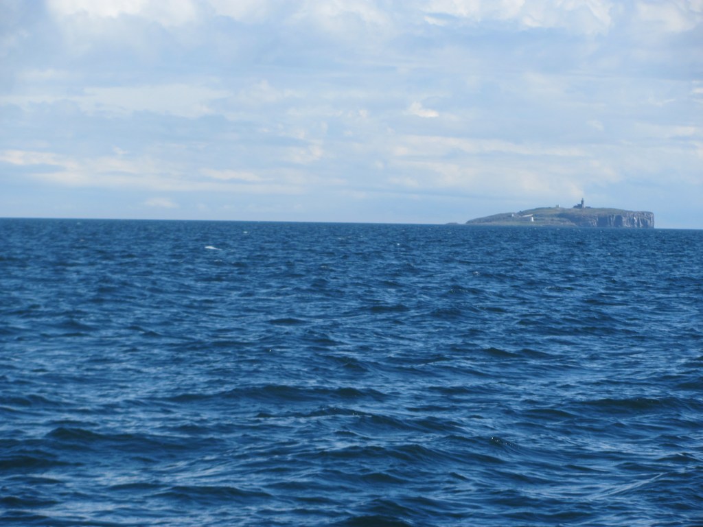Eventually we sail in close to the promontory of Fife Ness and enter the massive Firth of Forth. At its mouth it is so wide that the opposite shore is just a hazy blur on the horizon, and it will take another three hours before we reach Port Edgar Marina where we will berth for the night. Directly in front of us is the Island of May, formerly the site of a monastery, but now a nature reserve owned by Scottish Natural Heritage. Beyond that is Bass Rock, home to a gannet colony, which we make a mental note of seeing on our way south.