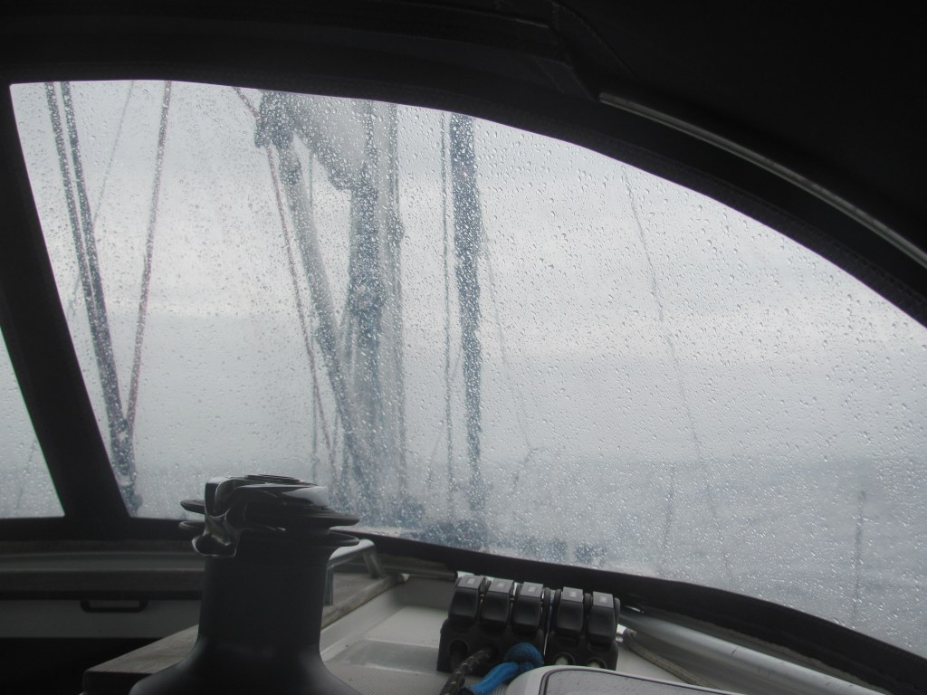 We cast off at 0600 on the dot with the First Mate at the helm, and head out past Downie Point with its large lump of rock almost separated from the mainland, and turn southwards. It is a damp and misty morning, with the cloud cover down low, and after a while we are not able to see the shoreline. I make sure that the radar and AIS are on so that we can see any other boats around us. No point in sailing blind.