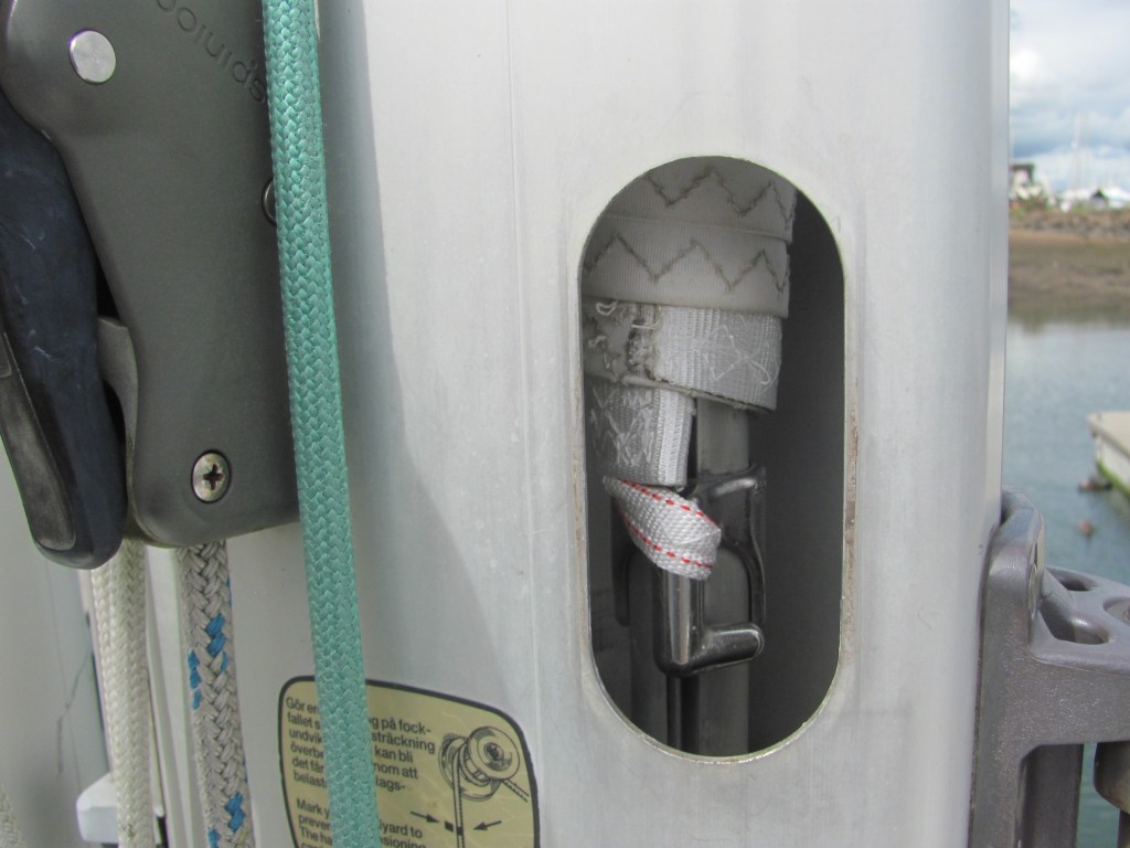 At least the sail is fixed. We trundle it back in the trolley and refit the sail. Everything seems to work perfectly.