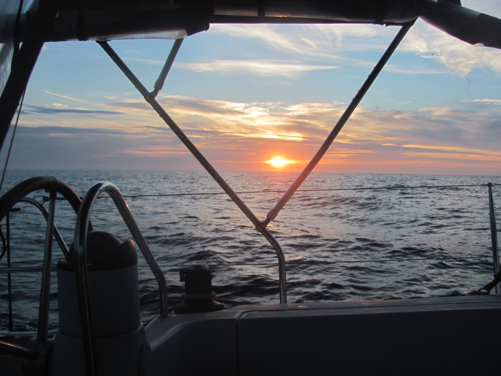 On the third day, the forecast is for light winds from the south, so we decide to continue our journey north to Holland. We lock out of the marina the night before and stay the night on the waiting pontoon so that we can leave early in the morning at 0600 to catch the north-flowing tidal current.