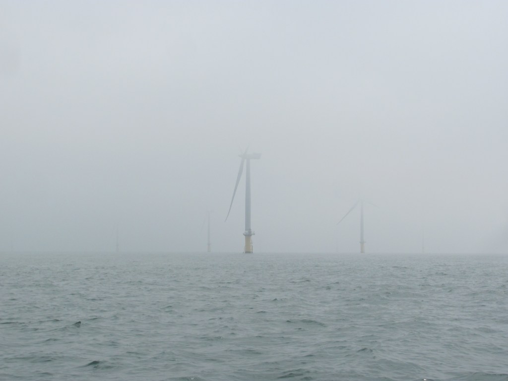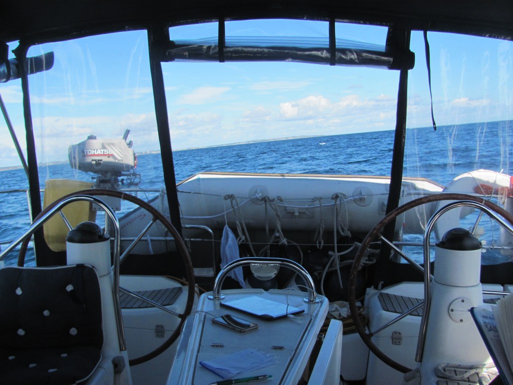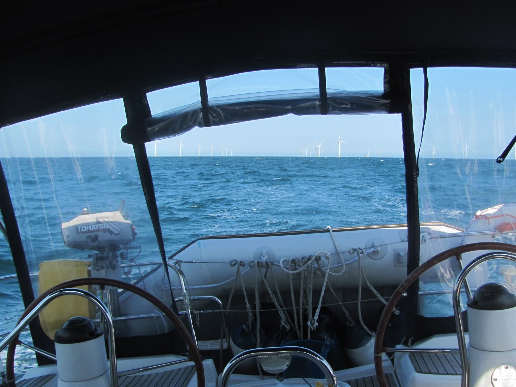 The wind in the afternoon drops slightly, but is still gusty. We decide to continue our voyage up to Oostende. The wind is from the southwest, on our starboard quarter, so we whizz along at 6-7 knots with just the big genoa out.
