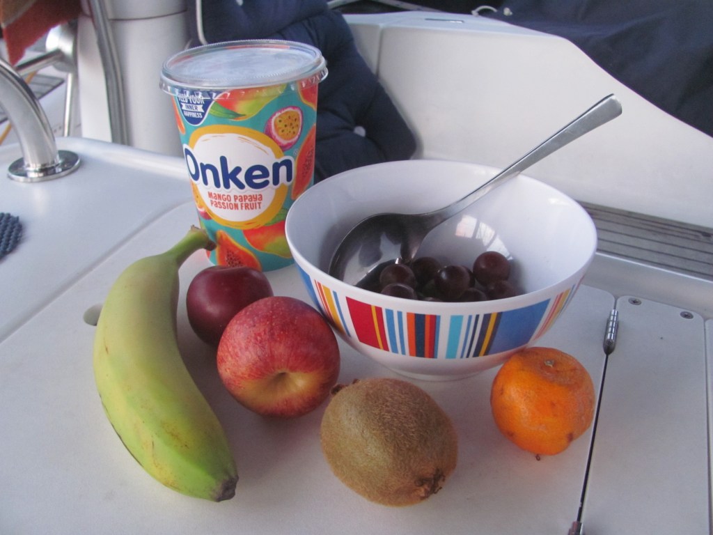 “Can you come and give me a hand with the bags?”, I hear a voice say. It is the First Mate arriving back from her shopping expedition with lots of nice goodies.