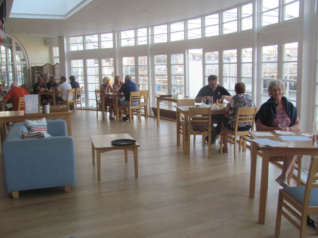 We tie up at the marina and have a cup of tea. The evacuation was thirsty work.