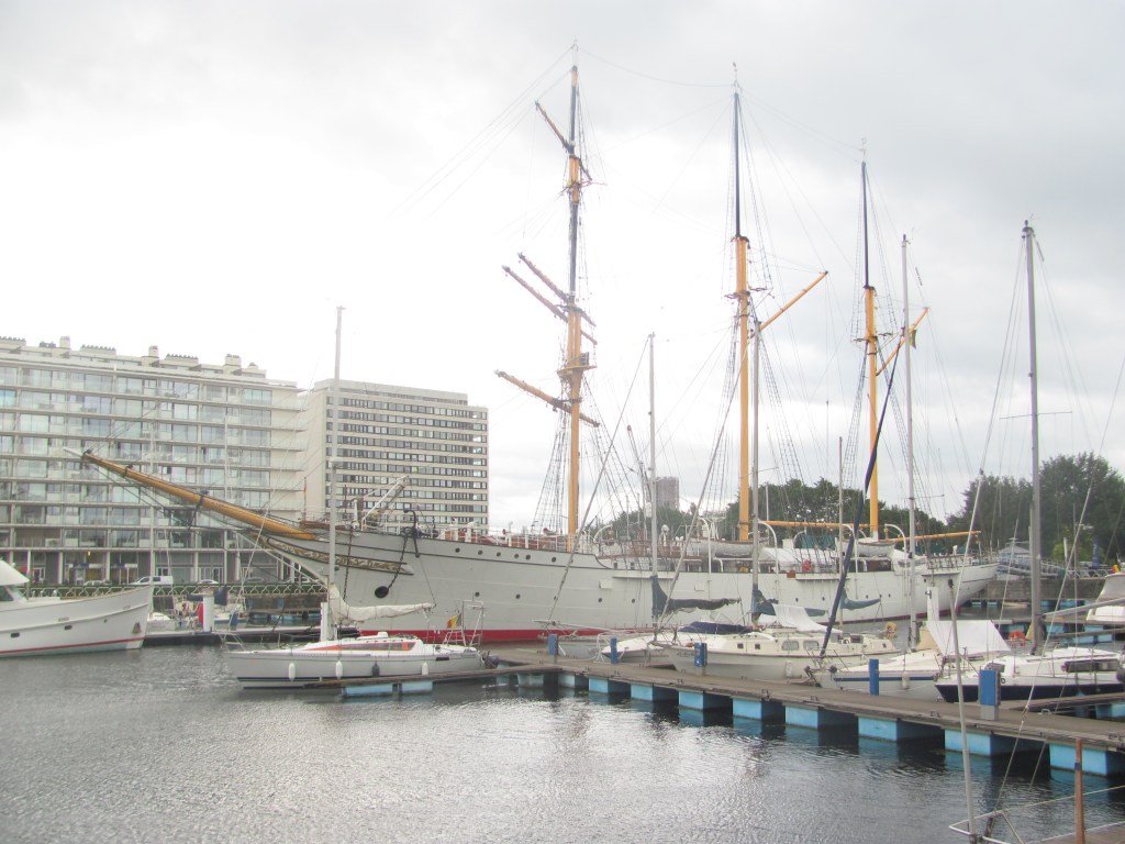 We are stuck in Oostende for two days waiting for 50 knot winds to die down. We kill time by reading, writing, shopping and visiting the Mercator sailing ship.