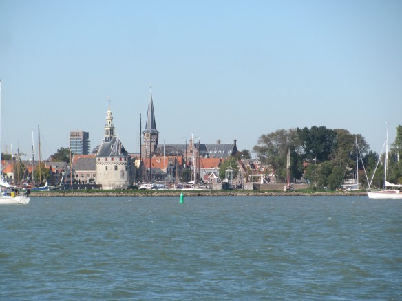 Eventually we reach Hoorn. There is a series of green buoys in a line to guide us in. We join the queue of boats heading back in, feeling like we are in a procession.