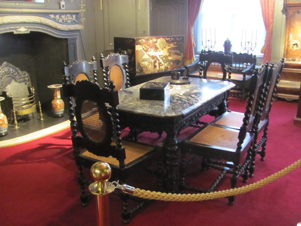 We walk from room to room and between floors admiring the beautiful furniture and rich wall decorations in each. There is certainly a lot of wealth evident.