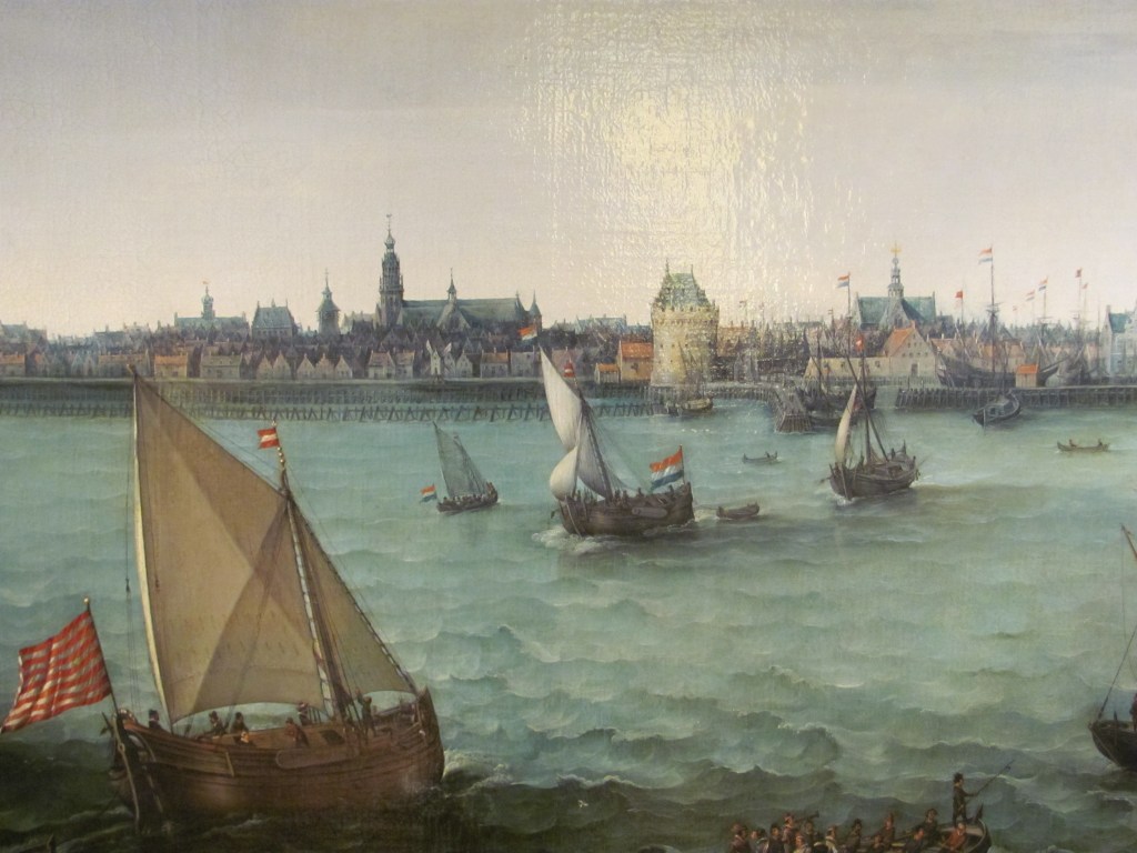 “I guess it was also ideally placed for trade, being halfway between the Baltic and Spain and a conduit for German produce coming down the Rhine?” I say, recalling something that I had read, and trying not to appear totally ignorant of Dutch history.