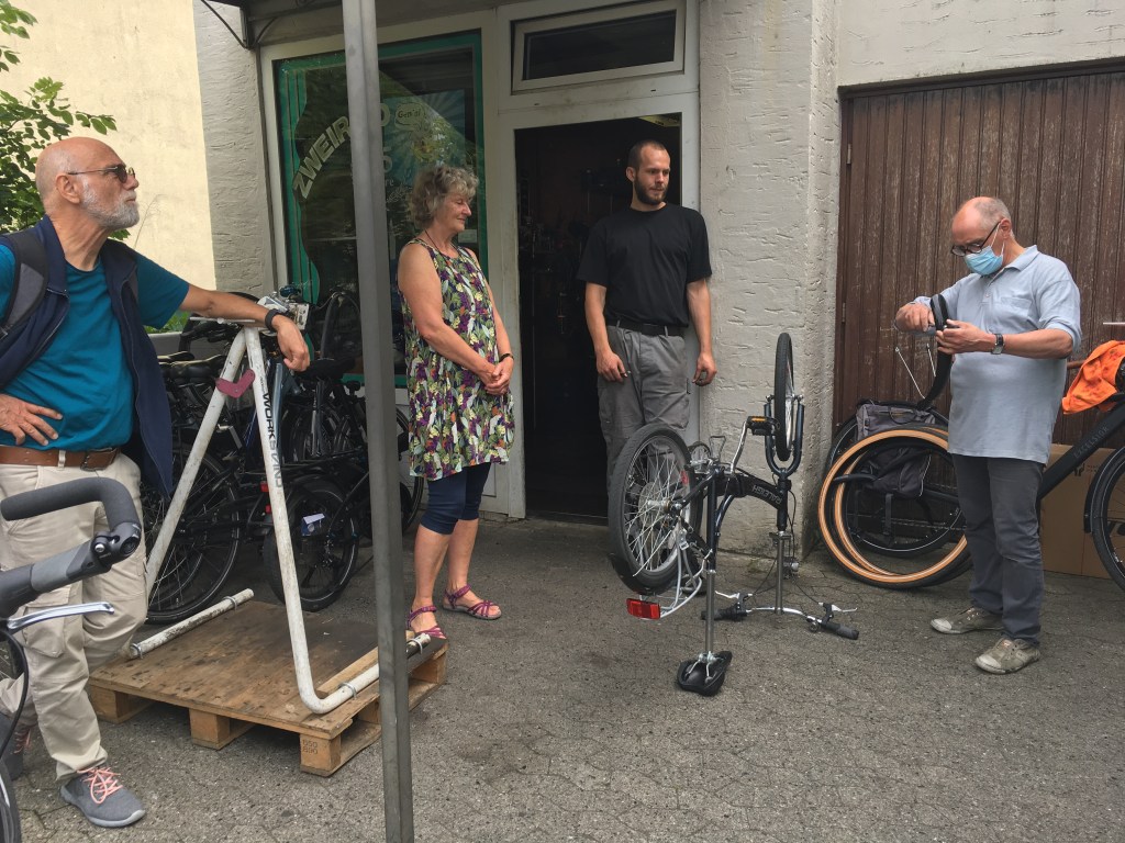 “I’ll just nip along to that cycle shop”, I say to the First Mate. “Hopefully, I can miss the rain. I’ll meet you back at the boat.”