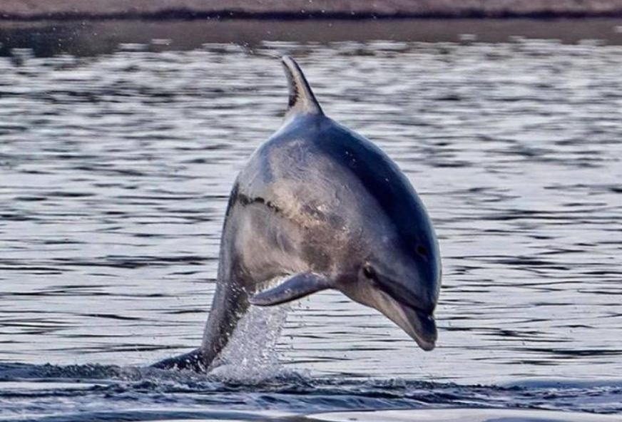 Sure enough, we see a fin and sleek grey body of a dolphin arching in and out of the water in front of us. A kayaker has stopped and is taking photos. I slip the propeller into neutral and we drift with the current for a few minutes watching him. He seems to relish having an audience and runs through his repertoire of tricks, swimming on his back and his front alternately, diving under the boat, and once, leaping out of the water completely. Eventually he disappears to swim off somewhere else. We learn later that his name is Delle, and that he has been positively identified as having come from the Moray Firth in Scotland just north of where we live, where he was known as Yoda!