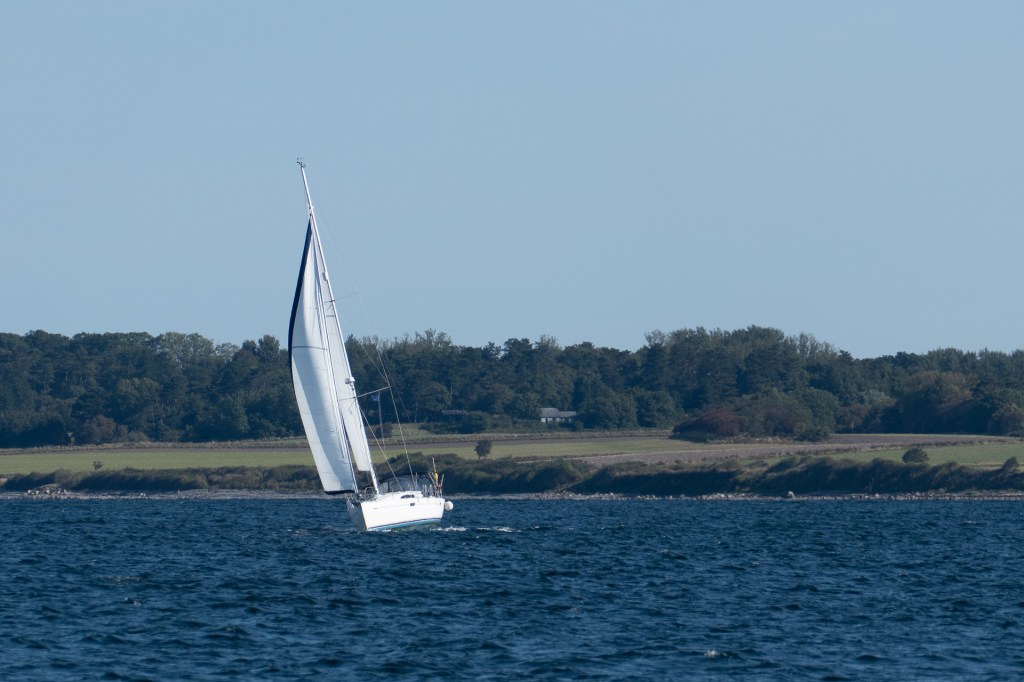 The forecast is for heavy showers, but we decide to take a chance and head in a south-easterly direction from Lyø towards Ærøskøbing on the island of Ærø. Once we are out of the shelter of Lyø, the wind picks up to 13 knots from the south-west and gives us a comfortable beam reach all the way. The islands of Avernakø, and then Drejø, pass by to our port side. In the distance, we can see squalls, and we keep our fingers crossed that we are to be spared. It is pleasant sailing, but we feel that it is only a matter of time before the rain comes our way.