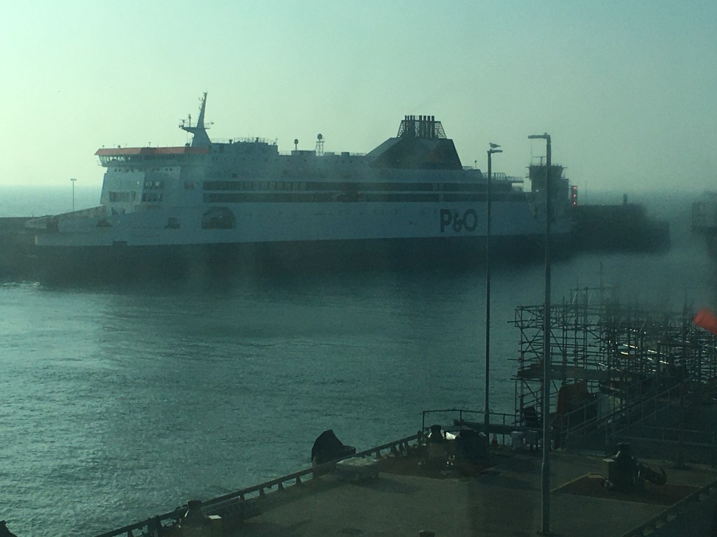 The next day, we continue our journey down to Dover. The news on the radio the day before hadn’t sounded good. Apparently, there is chaos at the port and huge queues tailing back up the M20, not only because of Brexit but also because of the laying up of the P&O ferries as a result of their sacking their staff and replacing them with new cheaper people. Luckily we are booked to travel on DFDS, but it is apparently still chaotic due to P&O passengers trying to find alternative ways to get to France for their holidays.