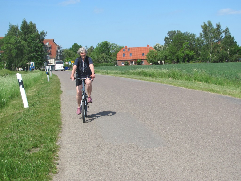 We stop in a village called Am Schwartz Busch for lunch. The view out over the beach is great, but the service is slow and when our lunch does arrive, the portions are small.