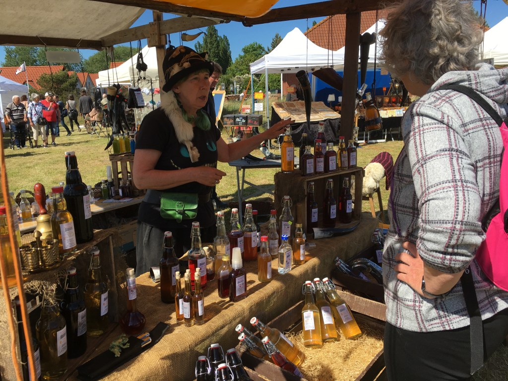 We find ourselves at a stall selling home-made spirits and liqueurs, and try a whisky flavoured with vanilla. It’s tasty and we buy a bottle.