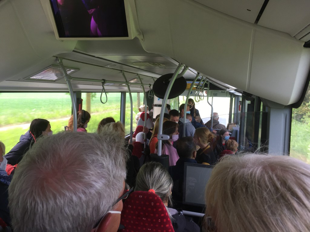 The next day we decide to take the bus to Wismar. It takes about 50 minutes. At one stop on the way, a large group of people are gathered, mostly women and children. The bus stops and they clamber in.