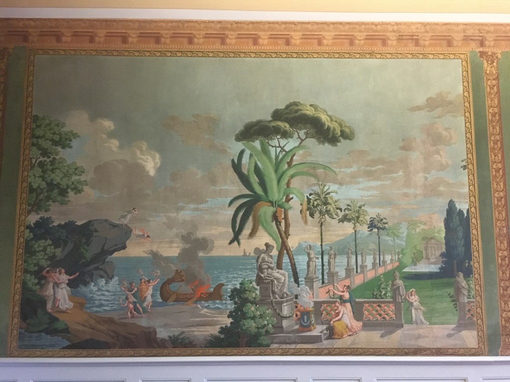 Not far from the church is the UNESCO World Heritage House of Wismar, originally built by a wealthy Hanseatic merchant. Houses built in the Hansa cities at that time had to follow common building regulations – all had to be built with bricks and have a firewall between neighbouring houses, for example. Refurbishment started in the 1970s under the GDR government and has continued until the present day. Of particular interest is the restored wallpaper depicting the Greek mythological tale, Travels of Telemachus on Calypso’s Island. Wallpaper was a relatively modern invention when this was first put up in the 1820s.