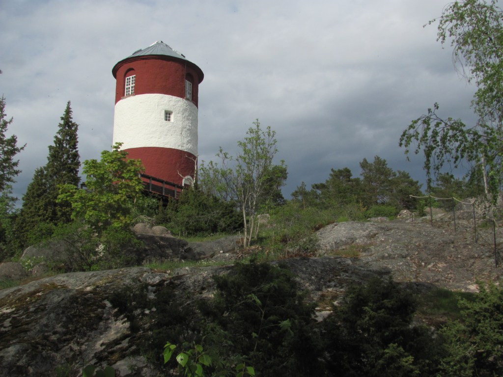 A little bit further on is the Arholma beacon. A man walking his two dogs stops to talk to us.