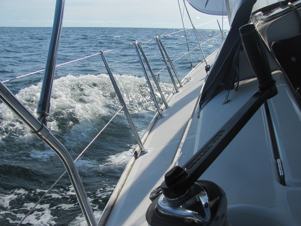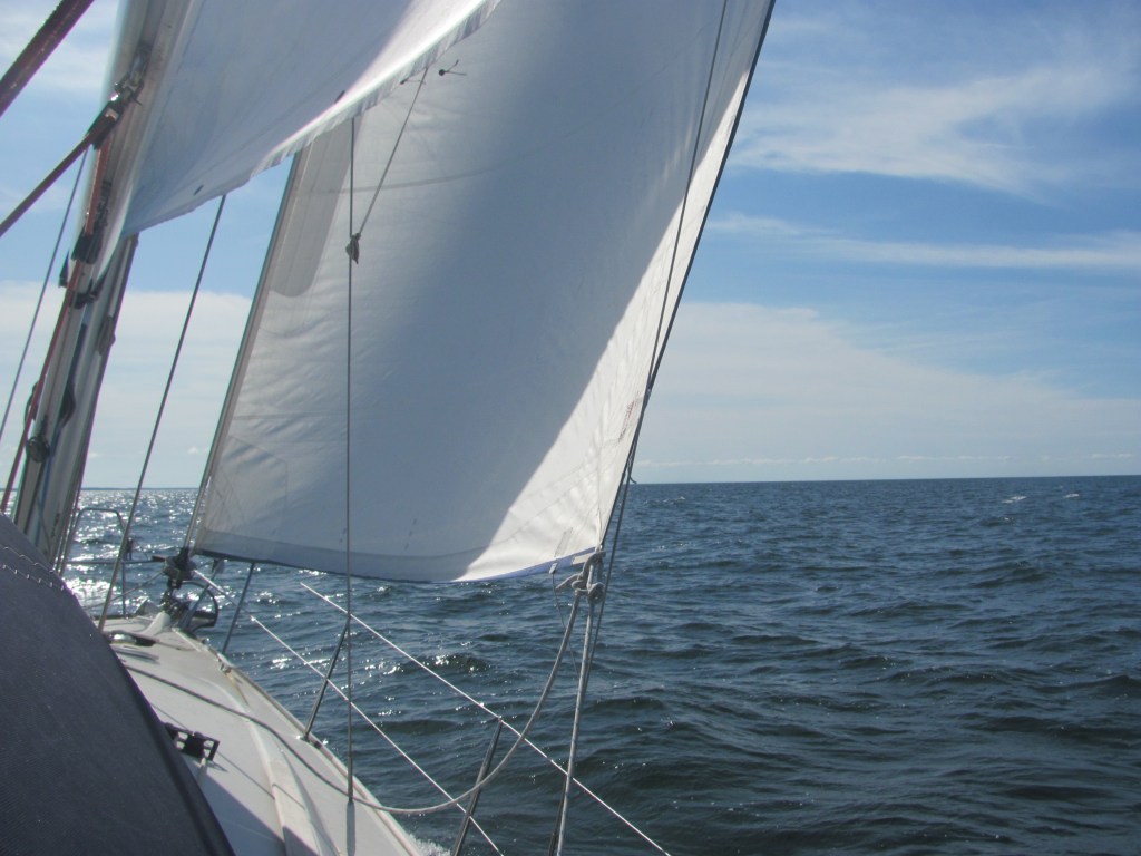 “Can you see Öland yet?”, calls the First Mate, bringing out a mug of hot tea and a digestive biscuit.