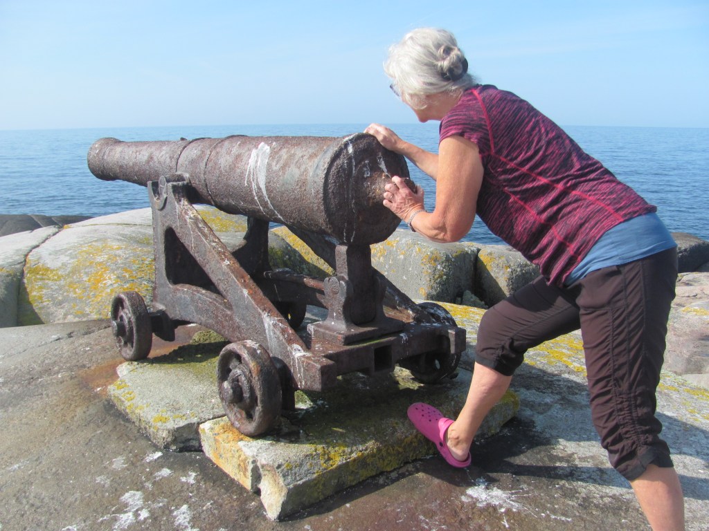 The fortress walls still exist in most places, and we walk along them trying to imagine life behind them in those days rather than the caravan park that it is nowadays. The occasional cannon pointing northwards towards Sweden and an ancient brazier for showing ships the way into the harbour help a little.