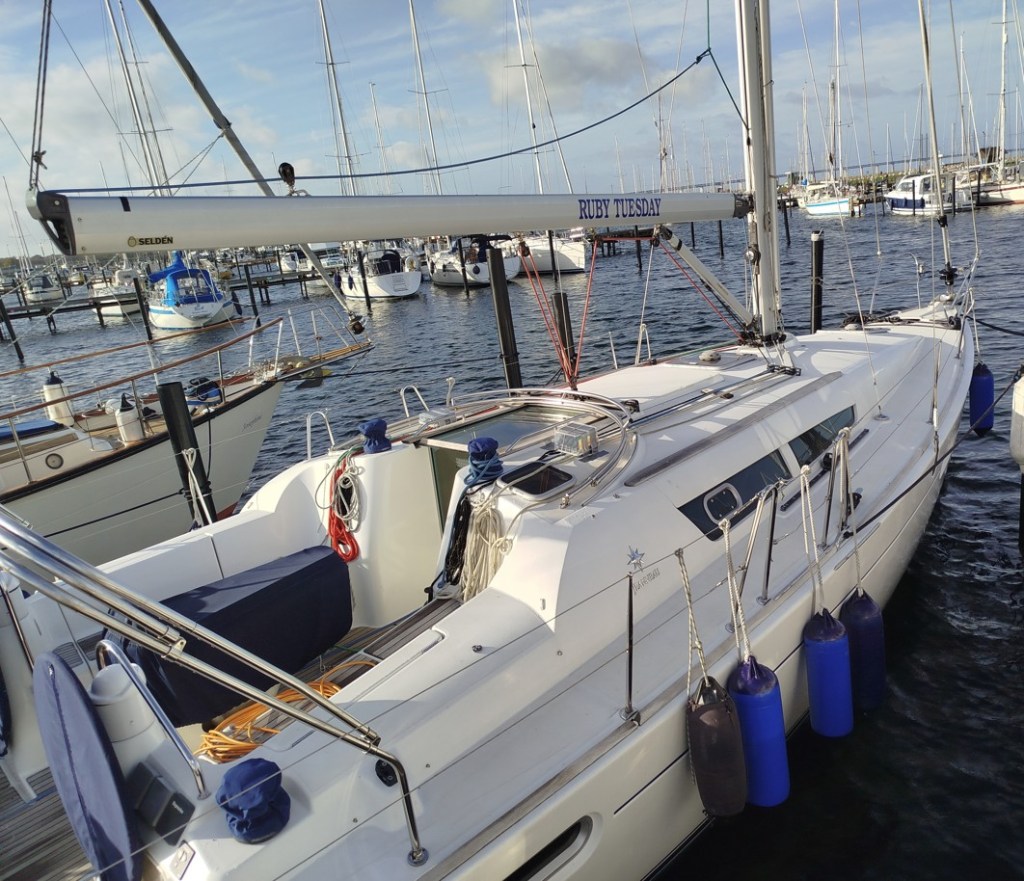 “I wonder who is in that little sailing boat we just passed?”, says the elderly gentleman to his companion. “I saw them in the harbour yesterday just close to where we were tied up. It had a British maritime flag. Surely they wouldn’t have come all the way from Britain? It’s a long way.”