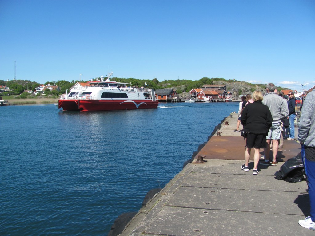 We eventually reach the village of Långegärde on the edge of the narrow channel that divides South Koster from North Koster. The electric ferry from the mainland has just arrived and is disgorging its passengers. We had seen it several times before when it stopped at Ekenas where we are tied up – with almost silent engines apart from a faint hum, it had seemed to creep up on us without warning and rock our boat violently with its wash. But all credit for being sustainable.