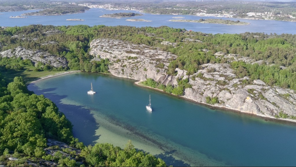 We had set sail from Smögen that morning. The other ‘foragers’ had already dispersed – Hekla had already left for Norway across the Skagerrak as they had to be in Bergen within a week to meet their daughter, Aloucia had decided to have a couple of days on Väderöarna (the Weather Islands) before doing the same, and Amalia was heading for Strömstad for a change of crew. We are meandering our way northwards so that we can visit our friends Ståle & Gunvor north of Oslo. On the way, we had seen a small bay that looked ideal for anchoring overnight.